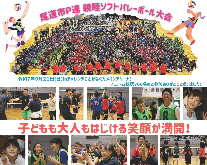 令和7年9月21日(日)に令和7年度尾道市PTA連合会親睦ソフトバレーボール大会がこざかなくんスポーツパークメインアリーナにて開催されました。